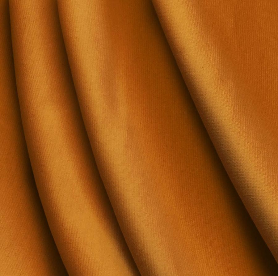 La tela base es el Punto Roma Elástico - Lyon, una tela de punto con una composición de 97% poliéster y 3% elastano, un gramaje de 282 gr/m2 y un ancho de tela de 150 cm. El color liso impreso es naranja quemado, con una mezcla de tinta cian de 17, magenta de 62, amarillo de 100 y negro de 6 para un total de 17 62 100 6 en CMYK. El color secundario naranja quemado es un tono cálido y vibrante con un fuerte carácter visual, que a menudo se asocia con la creatividad y la originalidad. Combina bien con tonos tierra y beige, así como con colores más intensos como el azul marino o el verde oscuro.