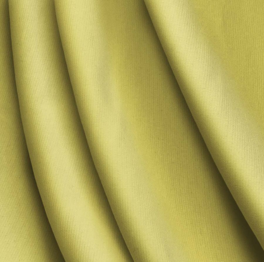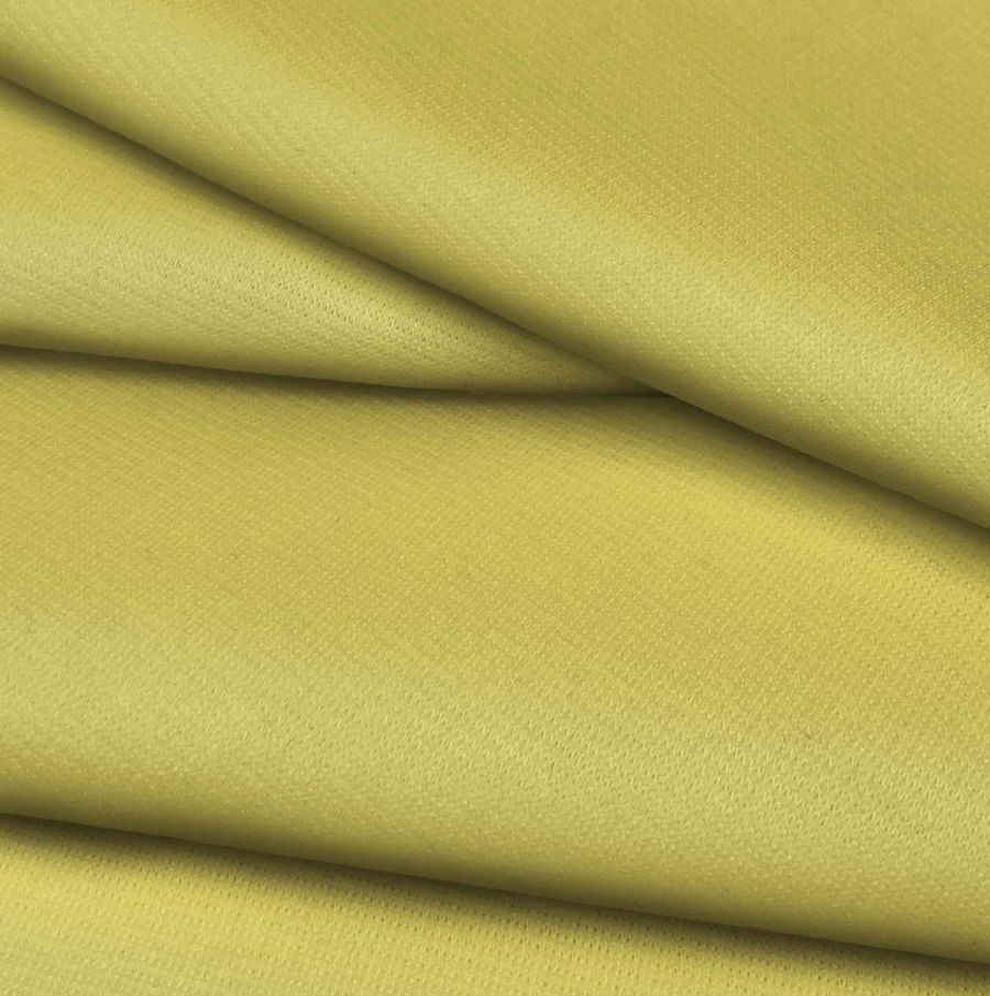 La tela base de este tejido es el Punto Roma Elástico-Lyon, compuesta por 97% poliéster y 3% elastano con un gramaje de 282 gr/m2 y un ancho de 150 cm. El color liso impreso es un Amarillo Ámbar, con un CMYK de 15 12 72 1, que se combina especialmente con colores neutros y tierra. El tejido está impreso con el color liso a una sola cara por impresión digital textil, lo que lo hace más llamativo y único.