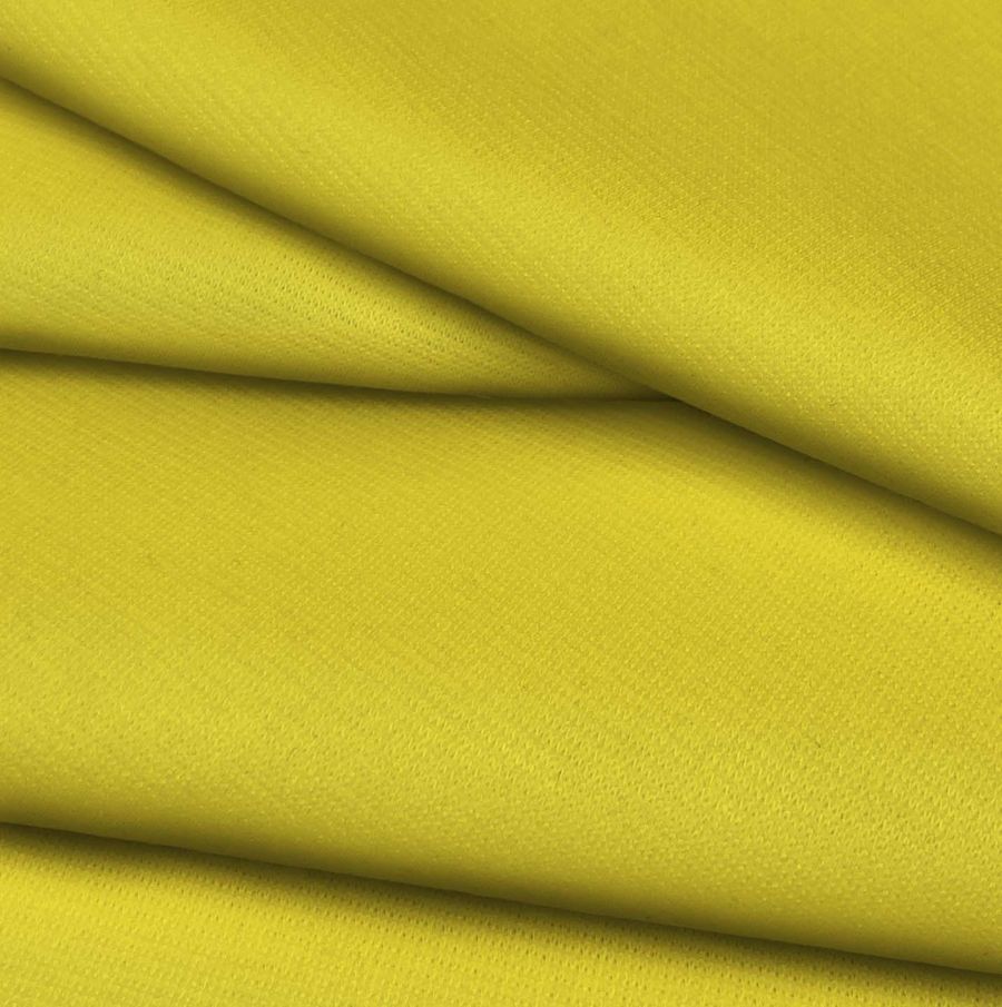 La tela base de este tejido es el Punto Roma Elástico - Lyon, una tela de punto compuesta por un 97% de poliéster y un 3% de elastano, con un gramaje de 282 gr/m2 y un ancho de 150 cm. El color liso impreso es Amarillo Margarina, con un CMYK de 9 9 87 0. Este color se caracteriza por ser vibrante y lleno de energía, recordando la calidez y el brillo del sol. Es un tono que simboliza la felicidad, el optimismo y la creatividad. Combina perfectamente con tonos tierra, marrones, blancos, grises y verdes, creando un equilibrio perfecto de tonalidades.
