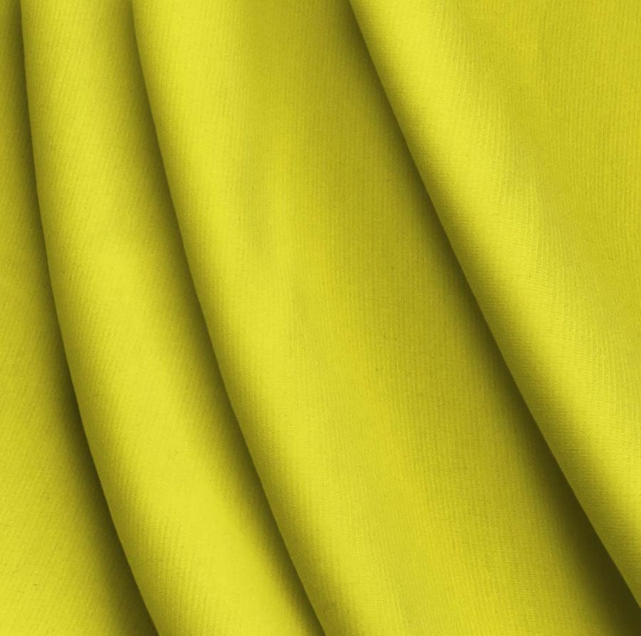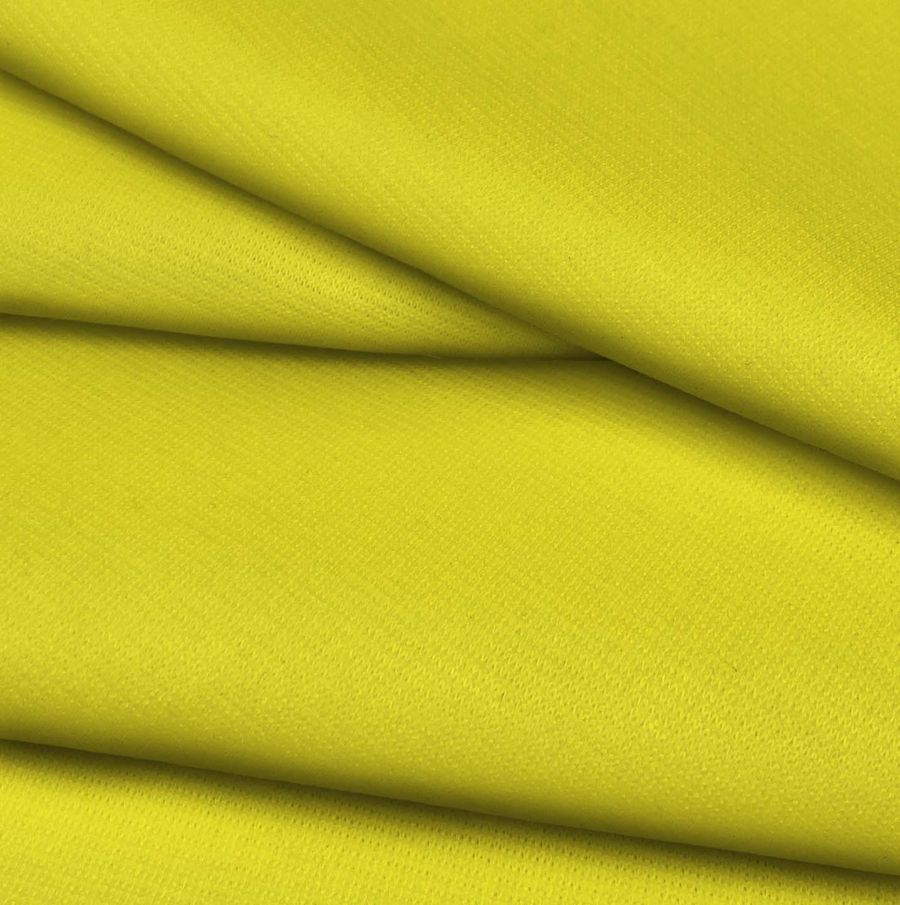La tela base es la Punto Roma Elástico - Lyon, una tela de punto compuesta por un 97% de poliéster y un 3% de elastano, con un gramaje de 282 gr/m2 y un ancho de 150 cm. El color liso impreso en esta tela es Amarillo Neón, con un CMYK de 7 0 85 0, de tonalidad vibrante y llamativa. Además, tiene un tacto suave y textura agradable al contacto con la piel. Este color combina perfectamente con tonalidades oscuras y neutras como el negro, gris y blanco, creando un contraste visual muy atractivo.