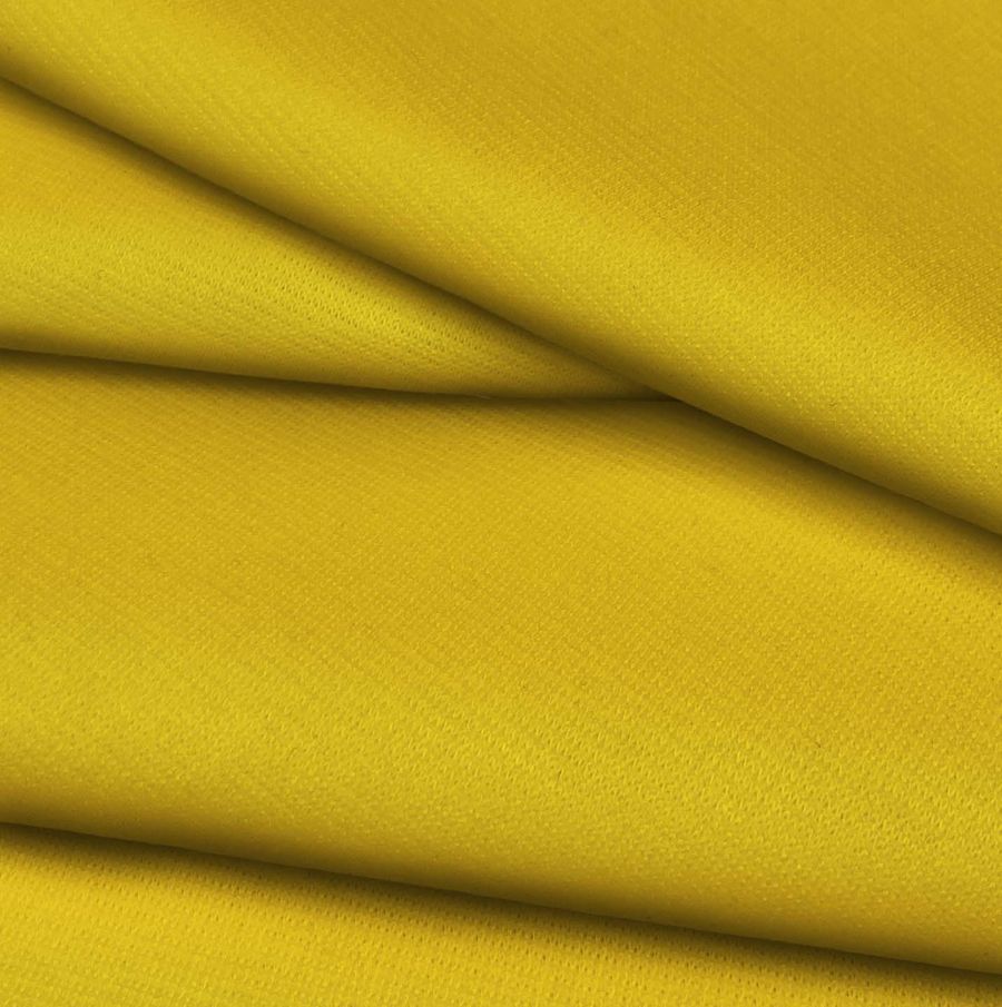 La tela base es el Punto Roma Elástico - Lyon, compuesta en un 97% de poliéster y un 3% de elastano, con un peso de 282 gr/m2 y un ancho de 150 cm. Su color liso impreso es amarillo permanente, con una combinación de 6% de tinta cyan, 27% de tinta magenta, 91% de tinta yellow y 0% de tinta black en CMYK. Este tono de amarillo se caracteriza por su vibrante intensidad, que evoca luminosidad y creatividad, y se combina especialmente bien con colores como el blanco o el negro.