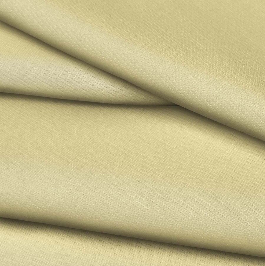 La tela base es un Punto Roma Elástico - Lyon, tipo de tela de punto compuesta por 97% poliéster y 3% elastano, con un gramaje de 282 gr/m2 y un ancho de 150 cm. El color liso impreso es un amarillo polluelo, que se obtiene con una tinta cian de 1, magenta de 5, amarilla de 46 y sin tinta negra (CMYK: 1 5 46 0). Este color es suave y brinda una sensación placentera al tacto, gracias a la textura de la tela base. Este color secundario combina bien con tonos verdes y rosados.