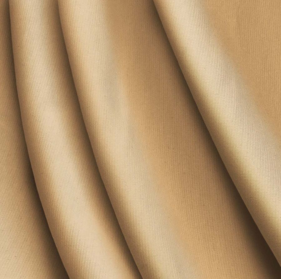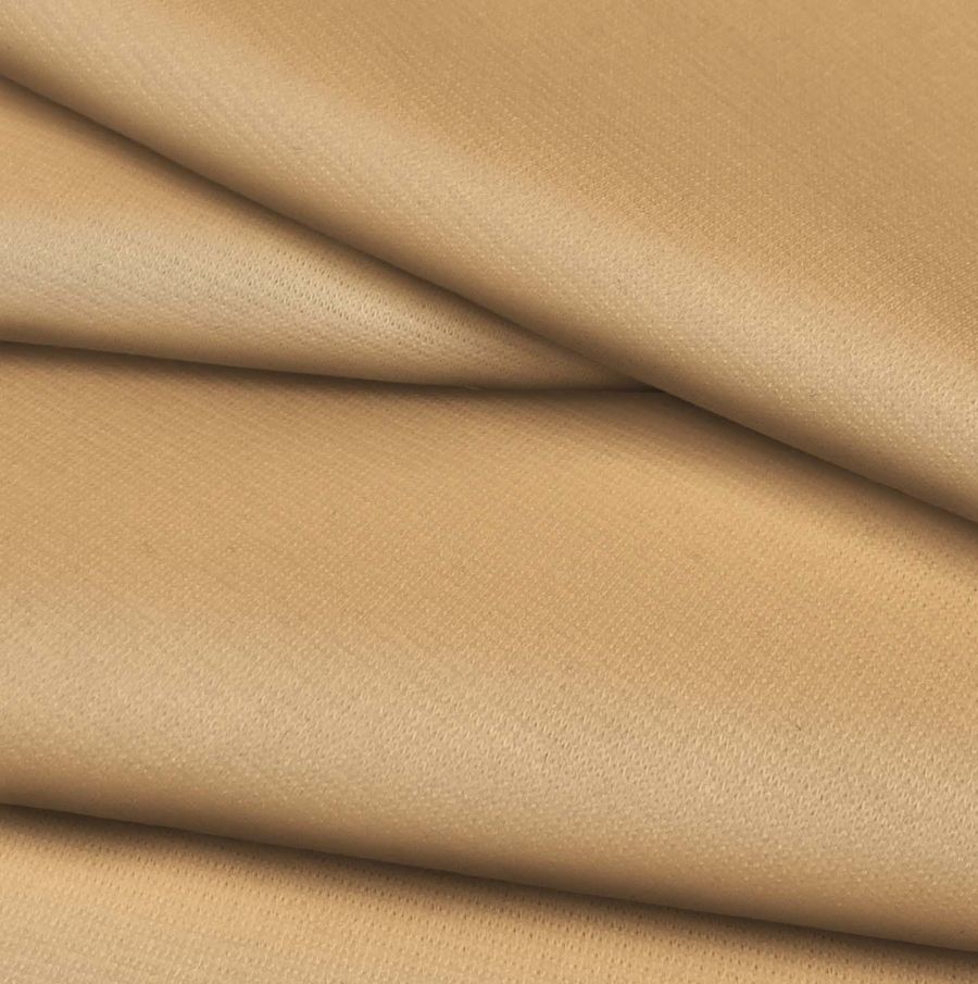 La tela base es el Punto Roma Elástico - Lyon, una tela de punto compuesta por 97% poliéster y 3% elastano, con un gramaje de 282 gr/m2 y un ancho de 150 cm. El color liso impreso es de tonalidades amarillas y rojizas, con un CMYK de 7 36 58 0. Este color secundario ofrece una sensación de calidez y vitalidad, recordando a los campos llenos de girasoles o al atardecer en una playa. Se puede combinar con colores como el marrón, el verde y el azul marino.