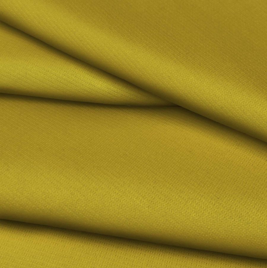 La tela base es el Punto Roma Elástico - Lyon, una tela de punto compuesta por un 97% de poliéster y un 3% de elastano. El gramaje de esta tela es de 282 gr/m2 y su ancho de 150 cm. El color liso impreso es el Amarillo Sahara, cuyo CMYK es de 26 32 93 12. Este color se caracteriza por su vibrante tonalidad y su carácter cálido y acogedor. Al combinarlo con otros colores, se obtienen interesantes contrastes con azules, grises y negros, así como armoniosas combinaciones con tonos más cálidos, como el naranja o el rojo.