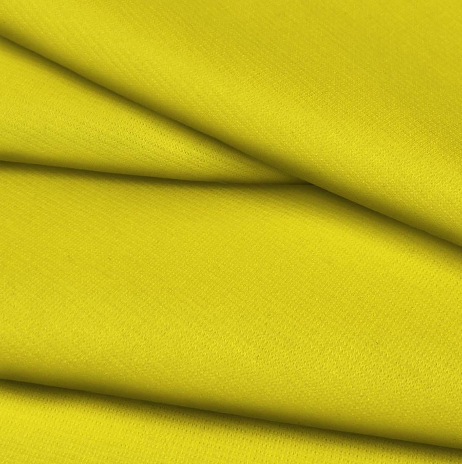 La tela base es el Punto Roma Elástico - Lyon, una tela de punto compuesta por 97% poliéster y 3% elastano, con un gramaje de 282 gr/m2 y ancho de 150 cm. El color liso impreso es amarillo sólido con un CMYK de 3 2 88 0, lo que significa que predominan las tintas de amarillo y un pequeño porcentaje de cian y magenta, sin presencia de color negro. Este tono simboliza la felicidad, la energía y la creatividad. Combina especialmente bien con tonos azules y verdes, pero también se puede complementar con rojos y rosas.