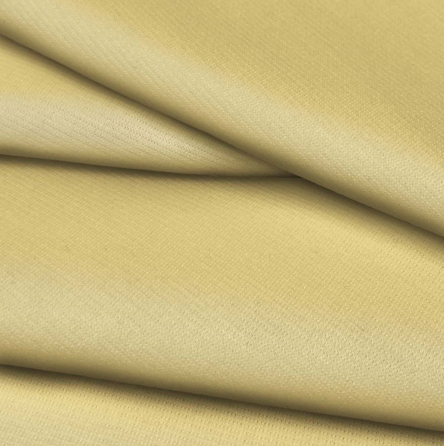 La tela base es el Punto Roma Elástico - Lyon, una tela de punto con una composición del 97% poliéster y 3% elastano, que tiene un gramaje de 282 gr/m2 y un ancho de 150 cm. Su color liso es amarillo té, el cual se logra con cero tinta cyan, doce tinta magenta, cincuenta y seis tinta yellow y cero tinta black (CMYK 0 12 56 0). Este color es un tono suave y cálido que evoca la paz y la tranquilidad, y que combina bien con tonos neutros como el gris, el blanco y el beige.