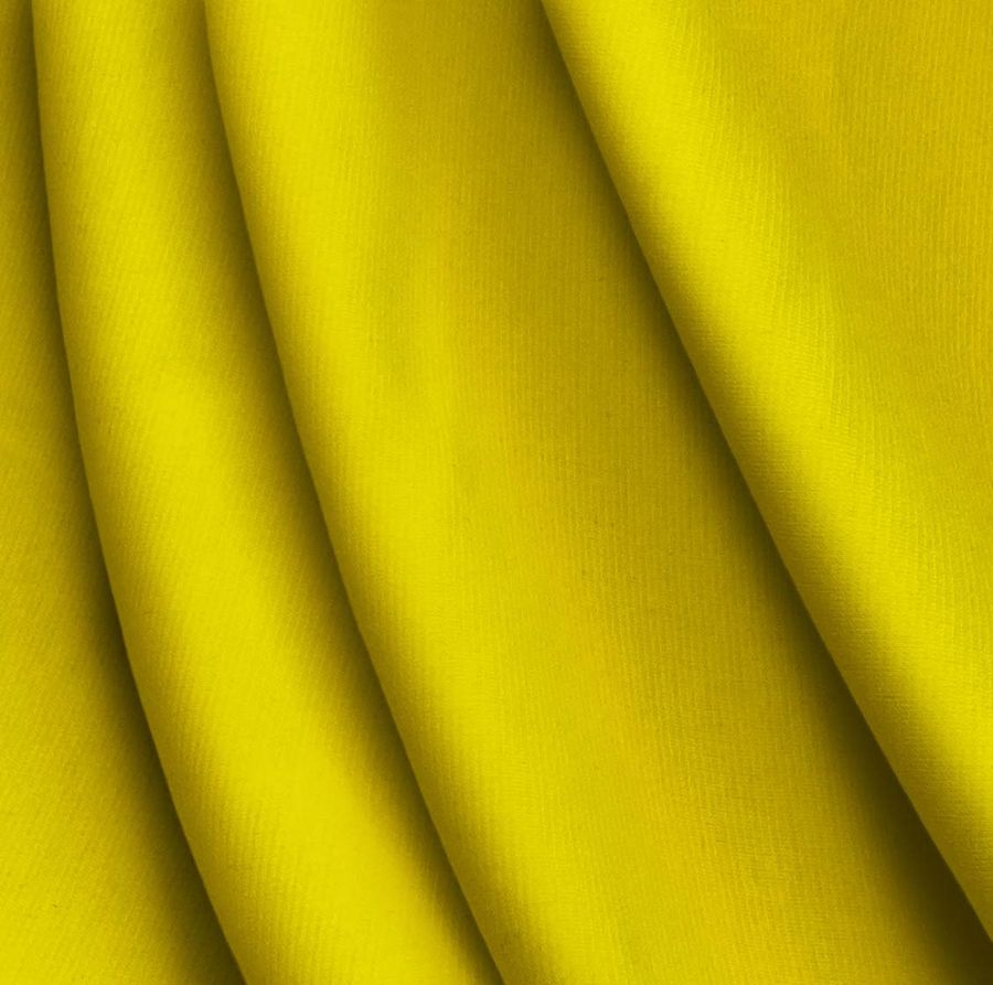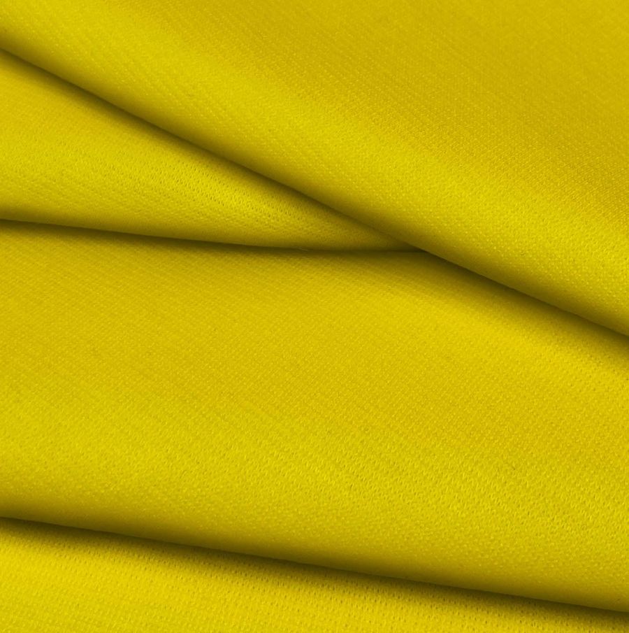 La tela base Punto Roma Elástico - Lyon presenta una composición de 97% poliéster y 3% elastano, con un gramaje de 282 gr/m2 y un ancho de 150 cm. Su color liso impreso es Amarillo Tráfico, que se compone de las tintas Cyan (3%), Magenta (16%), Yellow (94%) y Black (0%) en CMYK. Este color es vibrante y cálido, evocando energía y movimiento. Combina especialmente bien con tonos neutros como el gris, el negro, el blanco y el beige, así como con colores complementarios como el azul índigo, el verde bosque y el marrón tierra.