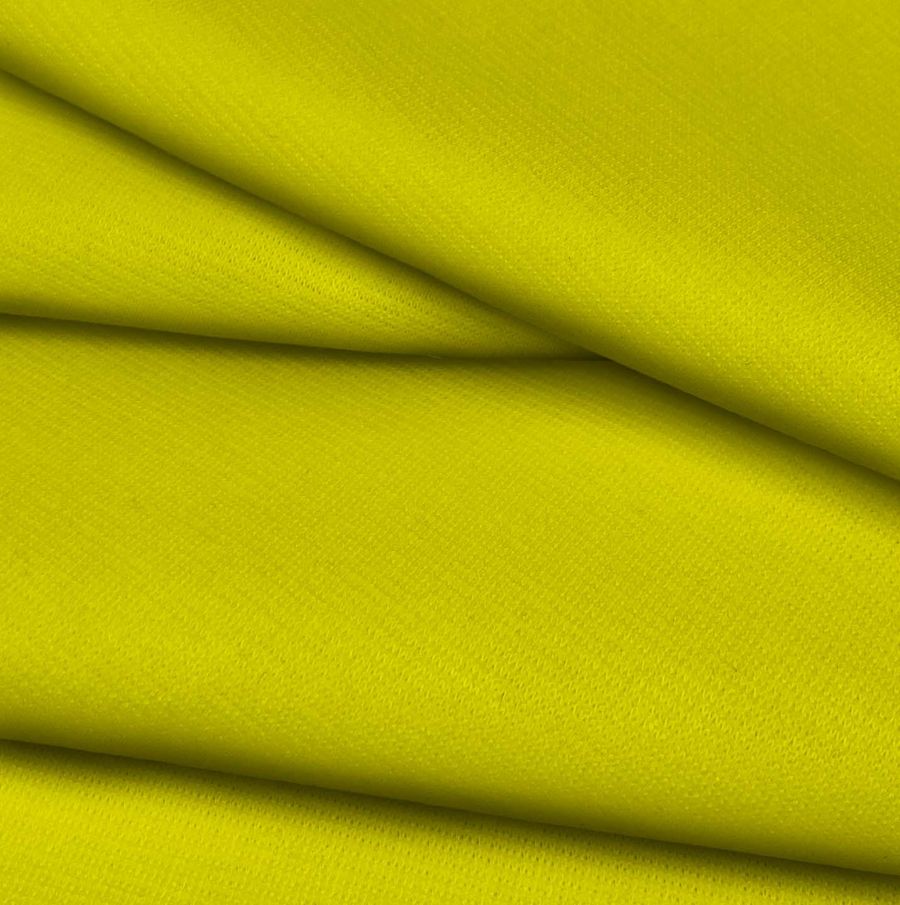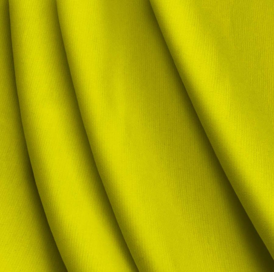 La tela base es el Punto Roma Elástico - Lyon, compuesta por un 97% de poliéster y un 3% de elastano, con un gramaje de 282 gr/m2 y un ancho de 150 cm. Su color liso impreso es amarillo verdoso con un CMYK de 20 4 96 0, lo que significa que está compuesto por un bajo nivel de tintas cian y magenta, un alto nivel de tinta amarilla y carente de tinta negra. Este color es muy versátil y combina muy bien con otros colores como el azul, el gris o el blanco, lo que lo convierte en una elección perfecta para prendas de moda y complementos.