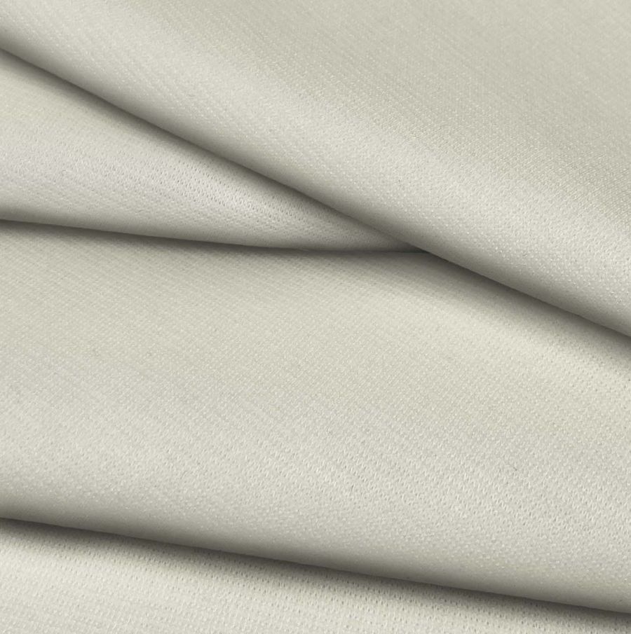 La tela base tiene una textura suave y agradable al tacto, y es elástica gracias al porcentaje de elastano. El color liso es sutil, y su tonalidad neutra le confiere un aire elegante y sofisticado. Además, esta tela es apta para prendas tanto de mujer como de hombre, pudiéndose utilizar en la confección de camisetas, pantalones, vestidos o jerseys. Asimismo, también es adecuada para la fabricación de servilletas para el comedor.