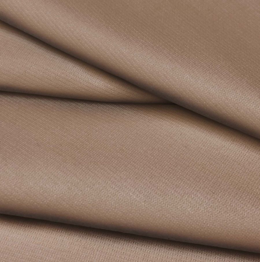 La tela base de este producto es Punto Roma Elástico - Lyon, una tela de punto con composición de 97% poliéster y 3% elastano que tiene un gramaje de 282 gr/m2 y un ancho de 150 cm. El color liso impreso es de un tono marrón-arcilla con un contenido de cyan de 31, magenta de 43, yellow de 48 y black de 22, representando un CMYK de 31 43 48 22.