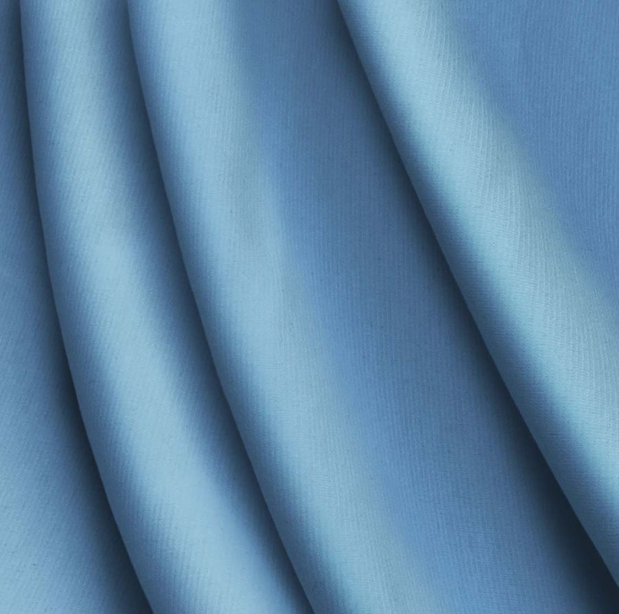 La tela base es el Punto Roma Elástico - Lyon, un tejido de punto compuesto por 97% poliéster y 3% elastano, con un gramaje de 282 gr/m2 y un ancho de 150 cm. Su color liso impreso es Azul Acero, cuyo CMYK es 64 32 4 0. Este color es una tonalidad mediana y fría que combina perfectamente con tonos neutros y pasteles, como el blanco, el gris claro y el rosa palo.