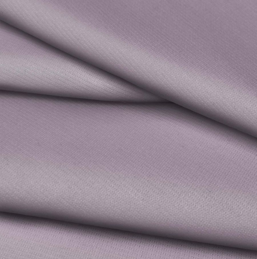 La tela base de este tejido es el Punto Roma Elástico-Lyon, compuesto por un 97% de poliéster y un 3% de elastano. Su gramaje es de 282 gr/m2 y su ancho de 150 cm. El color liso impreso consta de una combinación de gris y heliotropo, con un CMYK de 36 40 22 5. El heliotropo es un color vibrante y fuerte, a menudo asociado con la creatividad y la inspiración. Combina particularmente bien con tonos dorados, tonos rosas y azules suaves, así como con tonos neutros como el negro o el gris claro.