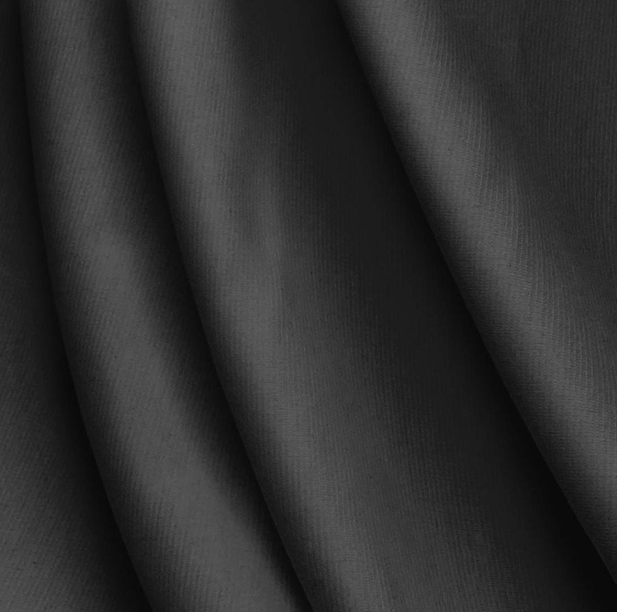 El color secundario del gris jet es el azul oscuro, el cual combina perfectamente con tonos grises, negros, blancos y azules más claros, ya sea en un look casual o elegante. Es importante destacar que este tejido está impreso con el color liso a una sola cara por impresión digital textil, lo que significa que el color no penetra en la tela, sino que se imprime en la superficie.