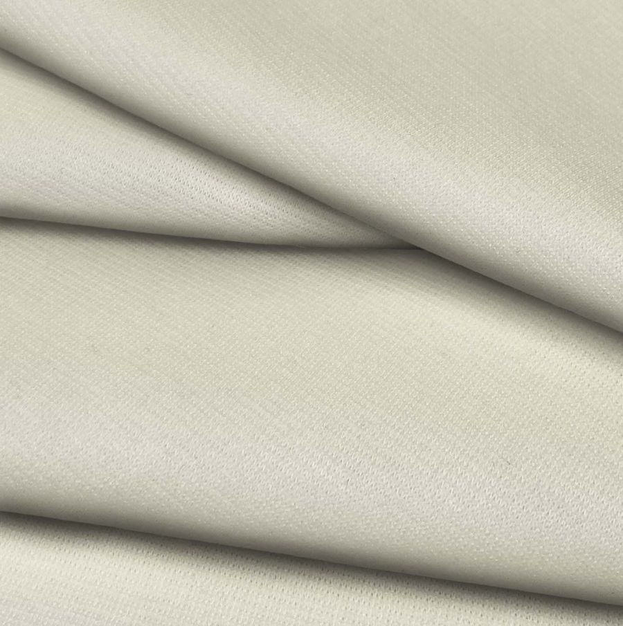 La tela base, Punto Roma Elástico - Lyon, es una tela de punto compuesta por un 97% de poliéster y un 3% de elastano con un gramaje de 282 gr/m2 y un ancho de 150 cm. El color liso impreso es blanco con un toque de maíz, con una composición de tintas CMYK de 0 2 18 0. Este tono de maíz se describe como un color cálido y alegre, que sugiere felicidad y vitalidad. Es un color secundario que combina bien con matices dorados y verdes, y a menudo se utiliza en la moda para dar un toque fresco y llamativo a las prendas.