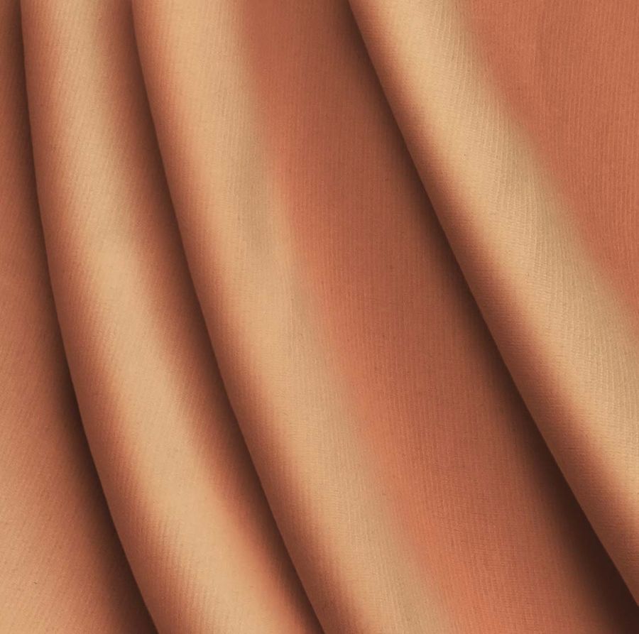 La tela base de este tejido es el Punto Roma Elástico - Lyon, un tipo de tela de punto con una composición del 97% de poliéster y un 3% de elastano. Su gramaje es de 282 gr/m2 y su ancho es de 150 cm. Este tejido se caracteriza por su suave textura al tacto y es de color liso impreso en naranja y cinabrio. En particular, el color cinabrio se describe como un tono anaranjado intenso con una base de rojo. Este tono secundario combina bien con colores neutros como el gris y el negro, así como con colores cálidos como el amarillo y el dorado. La impresión digital textil se ha utilizado para imprimir el color liso a una sola cara, lo que proporciona una mayor definición y riqueza al color.