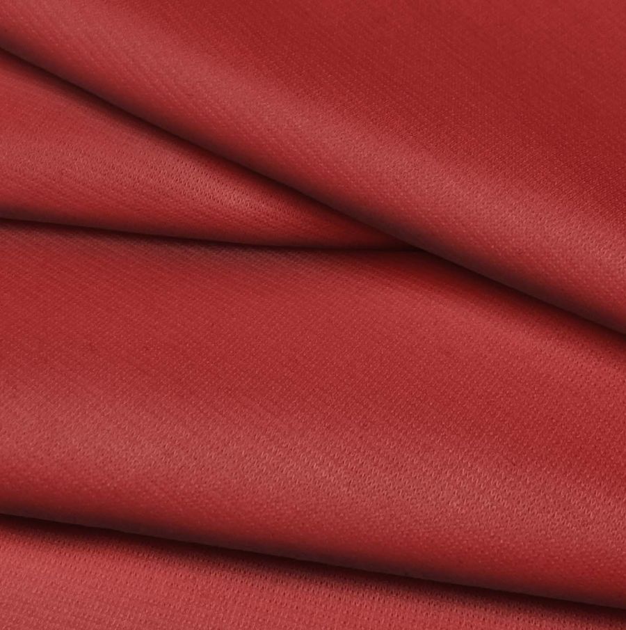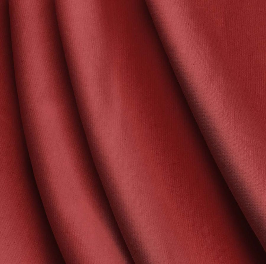 La tela base es el Punto Roma Elástico - Lyon, una tela de punto compuesta por un 97% de poliéster y un 3% de elastano, con un gramaje de 282 gr/m2 y un ancho de 150 cm. Se encuentra disponible en un color liso impreso en Rojo Auburn, cuyo CMYK es 24 93 82 19. El color secundario de este Rojo es el marrón oscuro de Auburn, una combinación sofisticada y cálida que evoca la tranquilidad y la elegancia. Este color combina muy bien con tonos neutros y oscuros como el negro, el gris, el marrón y el verde oliva.