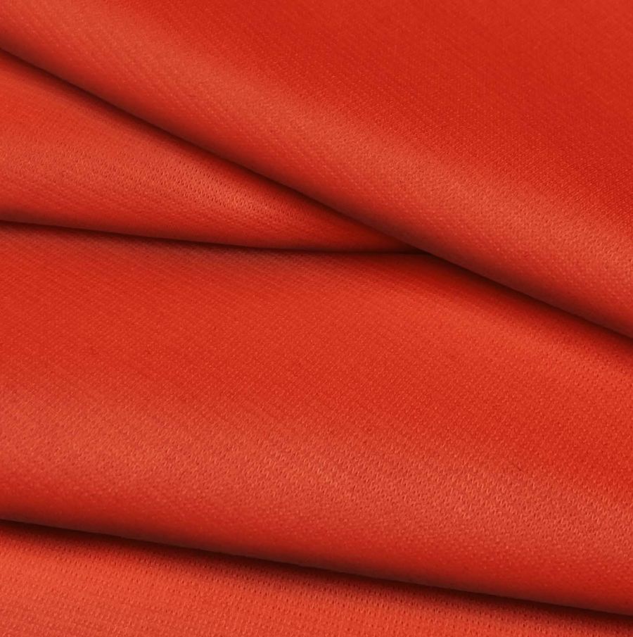 La tela base, conocida como Punto Roma Elástico - Lyon, es una tela de punto cómoda y elástica con una composición de 97% poliéster y 3% elastano, que le confiere una gran adaptabilidad. Su gramaje de 282gr/m2 y su ancho de 150cm la convierten en una opción resistente y versátil. El color liso impreso es Rojo Bermellón de Holanda, con valores de tinta cyan 0, magenta 91, yellow 98 y black 0 y un CMYK de 0 91 98 0.