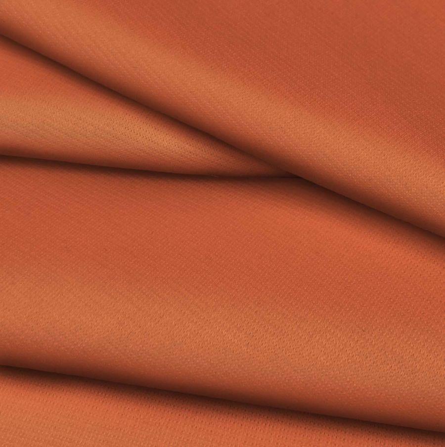 La tela base es el Punto Roma Elástico - Lyon, una tela de punto compuesta por 97% poliéster y 3% elastano, con un gramaje de 282 gr/m2 y una anchura de 150 cm. Su color liso impreso es un rojo bermellón medio, con una combinación CMYK de 10 72 79 2. Este color secundario se caracteriza por su alta intensidad y fuerza, siendo un color llamativo y vibrante. Combina especialmente bien con tonos neutros como el blanco, negro o gris, o con otros colores contrastados como el verde o el azul.