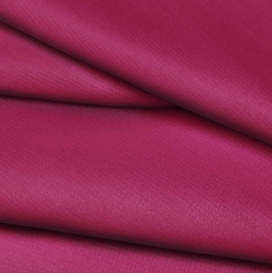 La tela base, Punto Roma Elástico - Lyon, es un tejido de punto compuesto por un 97% de poliéster y un 3% de elastano, con un gramaje de 282 gr/m2 y una anchura de 150 cm. Su color liso impreso es Rojo Carmín, obtenido mediante la tecnología de impresión por sublimación y cuyos valores de CMYK son 27 97 34 20. Este color es intenso y vivo, con un toque de elegancia que lo hace muy versátil. Además, su tonalidad permite una fácil combinación con otros colores como el blanco y el negro, así como con tonos más suaves como el rosa o el beige.