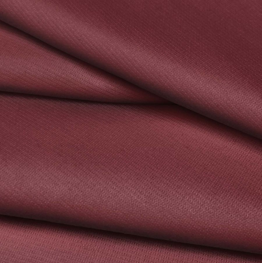 La tela base es Punto Roma Elástico - Lyon con una composición de 97% poliéster y 3% elastano, con un gramaje de 282 gr/m2 y un ancho de 150 cm. El color liso impreso en esta tela es el Rojo Vino con un CMYK de 34 82 57 47. Este tono profundo de rojo se logra gracias a la combinación de la tinta cyan, magenta, yellow y black en cantidades específicas.
