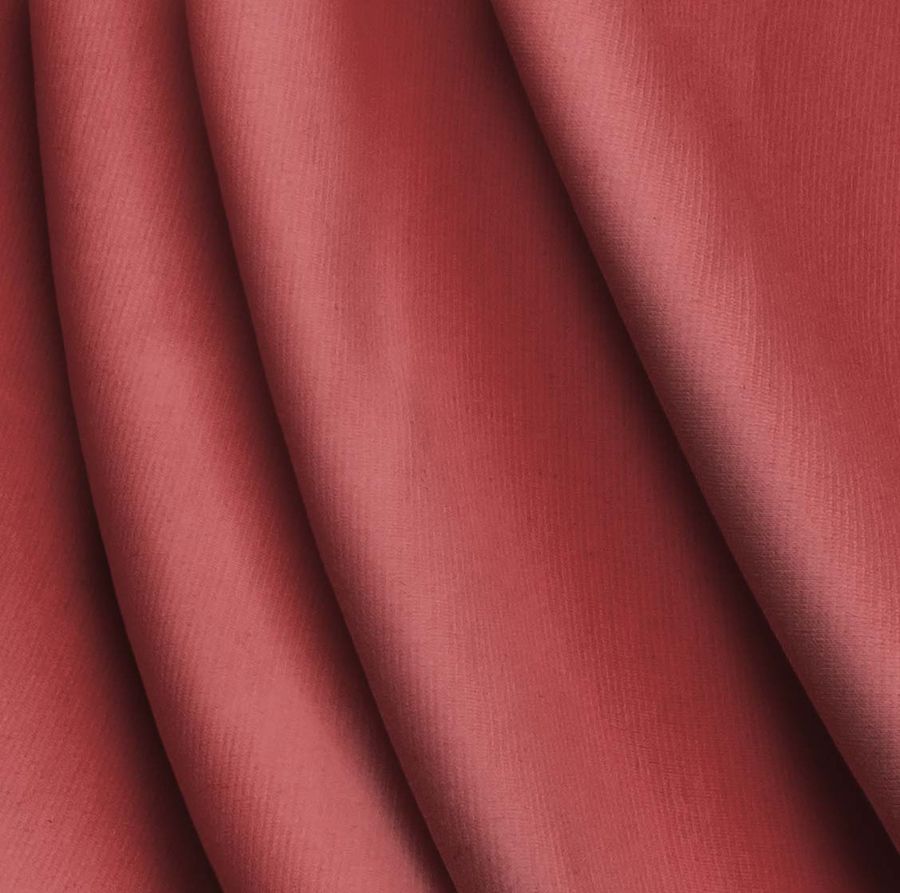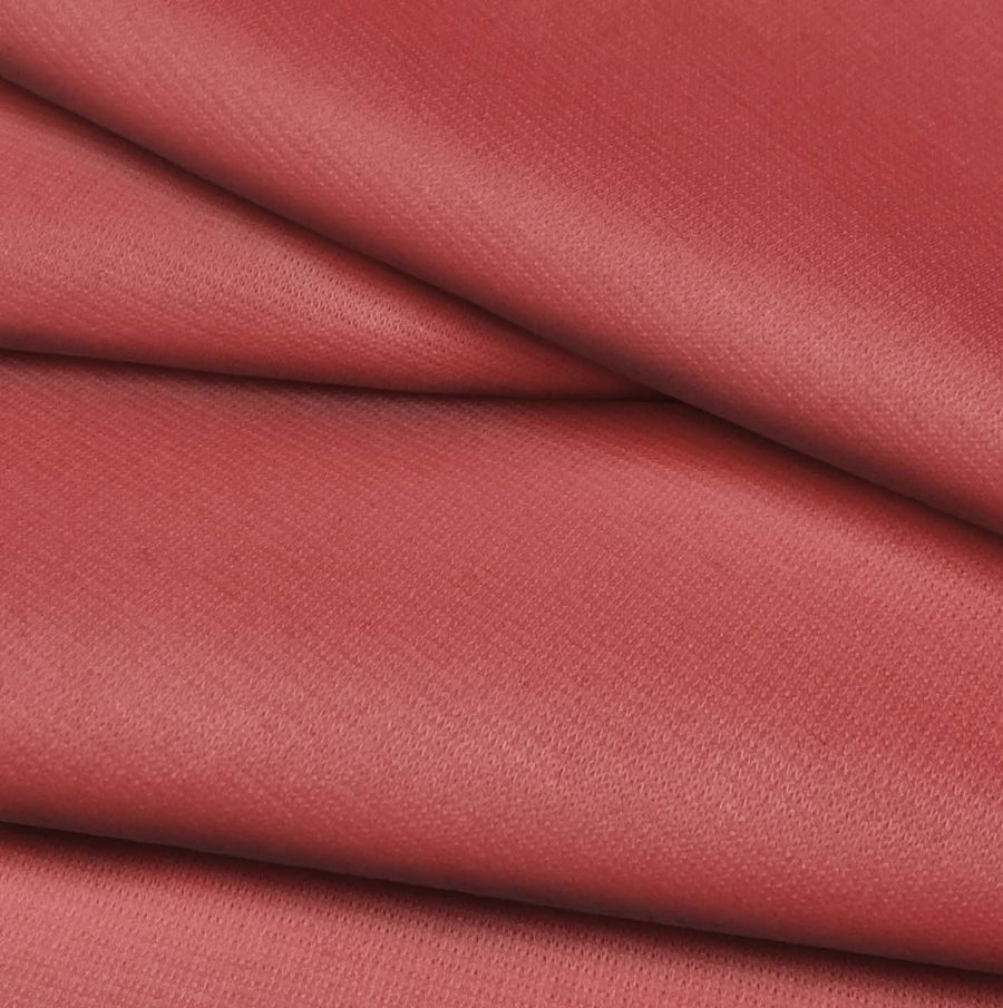 La tela base de este tejido es el Punto Roma Elástico-Lyon, una tela de punto compuesta por un 97% de poliéster y un 3% de elastano, con un gramaje de 282 gr/m2 y un ancho de 150 cm. El color liso impreso es un rojo con destello agridulce, cuyos atributos son: tinta cyan 19, tinta magenta 78, tinta yellow 60 y tinta black 8, lo que se traduce en un código CMYK de 19 78 60 8. Este color secundario simboliza el amor, la pasión y la energía, y técnicamente es un color que se encuentra en una tonalidad intermedia entre el rojo puro y el rojo anaranjado. Combina muy bien con tonos cálidos como el amarillo, el naranja y el dorado, y también con tonos más fríos como el azul y el verde.