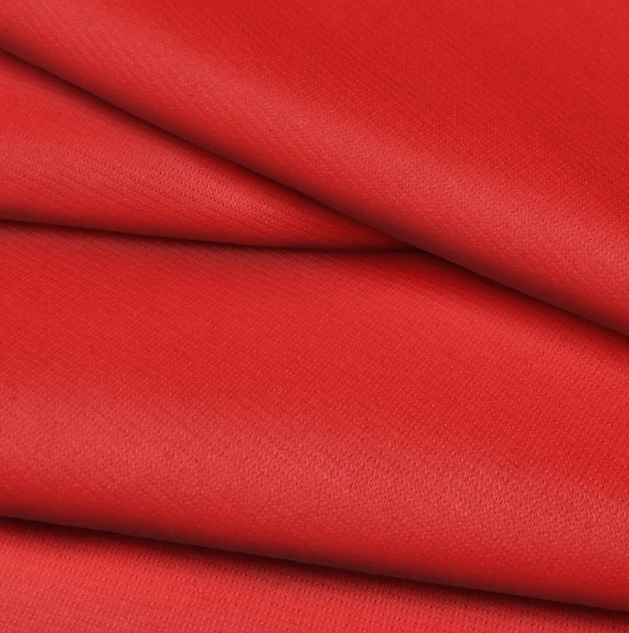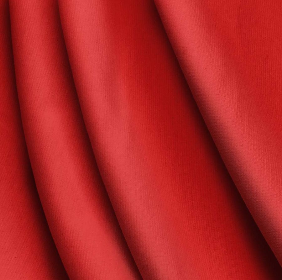 La tela base del producto es Punto Roma Elástico - Lyon, una tela de punto compuesta por un 97% de poliéster y un 3% de elastano, con un gramaje de 282 gr/m2 y un ancho de 150 cm. El color liso impreso es rojo lujuria con un CMYK de 0 95 90 0, lo que significa que tiene una alta saturación de magenta y amarillo, creando un tono cálido y vibrante. Este color secundario es símbolo de la pasión y el poder, y se combina bien con tonos neutros como el negro y el blanco, y con tonos complementarios como el verde y el azul.