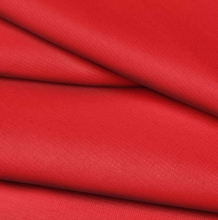 La tela base, el Punto Roma Elástico - Lyon, es una tela de tejido de punto con una composición del 97% de poliéster y un 3% de elastano, lo que le proporciona una gran flexibilidad y adaptabilidad al cuerpo. Su gramaje de 282 gr/m2 la convierte en una tela de peso medio y de alta calidad. El color liso impreso es de un tono rojo pigmento y en términos técnicos se compone de cero por ciento de cian, noventa y cinco por ciento de magenta y ochenta y cinco por ciento de amarillo. Este color rojo pigmento combina muy bien con tonos neutros como el blanco y el negro, así como con tonos complementarios como el verde y el azul.