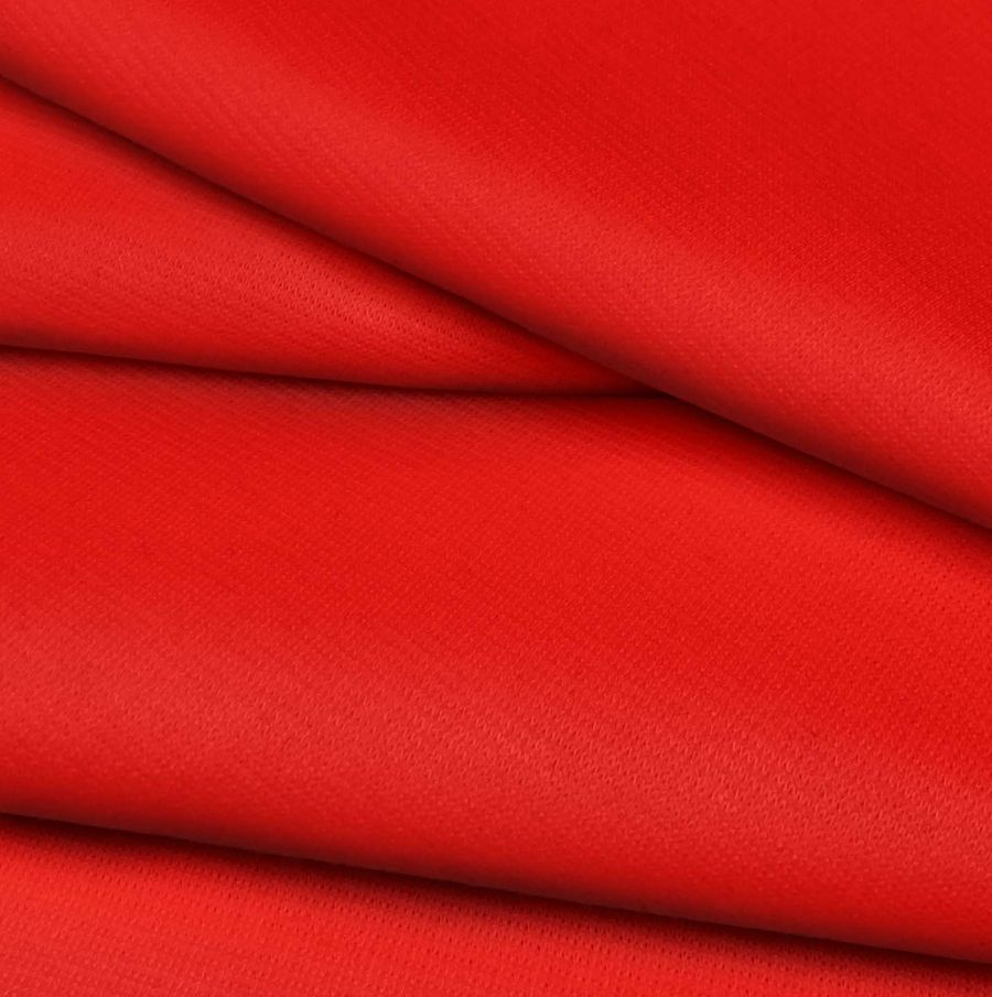 La tela base es el Punto Roma Elástico - Lyon, una tela de punto compuesta por un 97% de poliéster y 3% de elastano, con un gramaje de 282 gr/m2 y un ancho de 150 cm. El color liso impreso es un rojo caramelo, cuyo CMYK es 0 94 92 0. Este color simboliza la pasión y la fuerza, y técnicamente hablando, sus tintas magenta y yellow se mezclan en una proporción casi perfecta para crear este tono cálido y vibrante. Combinado con tonos neutros como el blanco, el negro o el gris, o con tonos más atrevidos como el mostaza o el verde oliva, este color puede ser un elemento esencial en cualquier diseño textil.