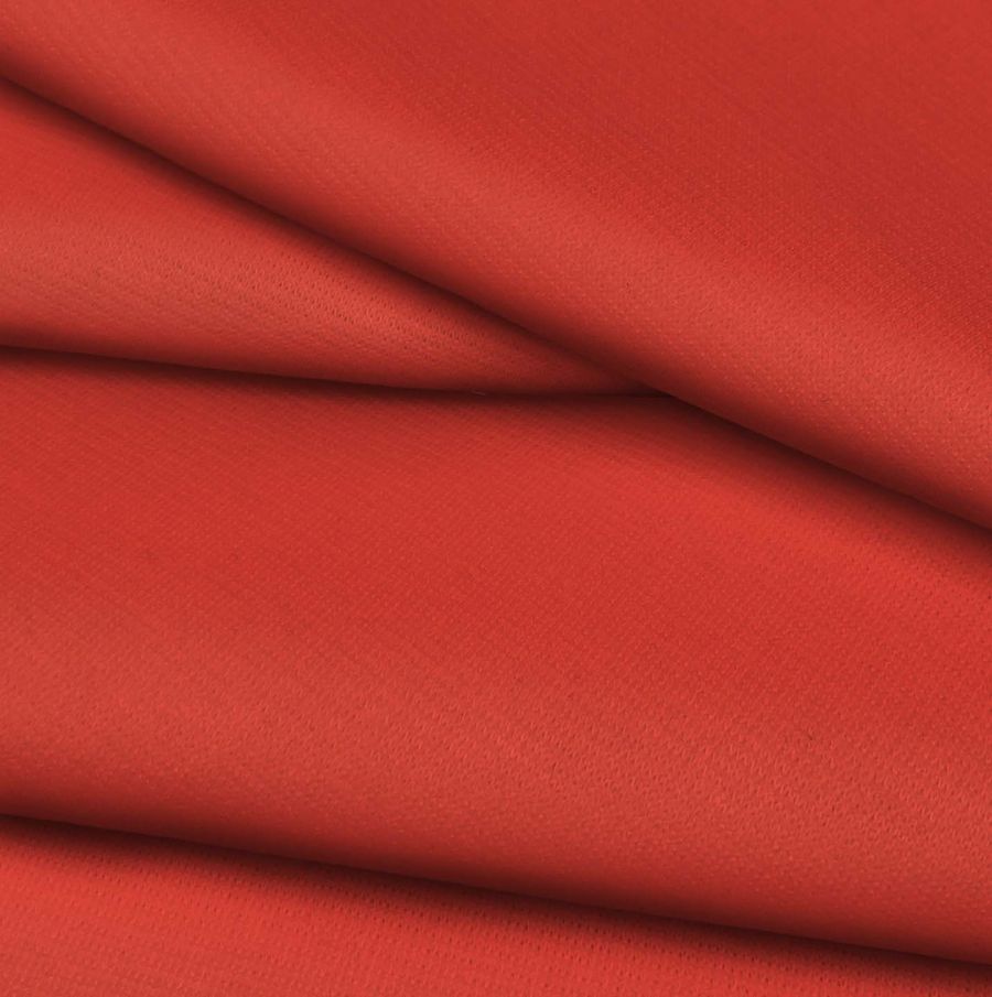 La tela base, Punto Roma Elástico - Lyon, es una tela de punto elástica compuesta por un 97% de poliéster y un 3% de elastano, con un peso de 282 gr/m2 y un ancho de 150 cm. El color liso impreso, en tono rojo CG, está compuesto por una mezcla de cian, magenta y amarillo en proporciones de 5, 87 y 82 respectivamente, sin presencia de negro en su CMYK. Este color rojo es un tono intenso y vibrante que añade personalidad y fuerza a cualquier prenda. Se combina armoniosamente con tonos azules, verdes y grises.