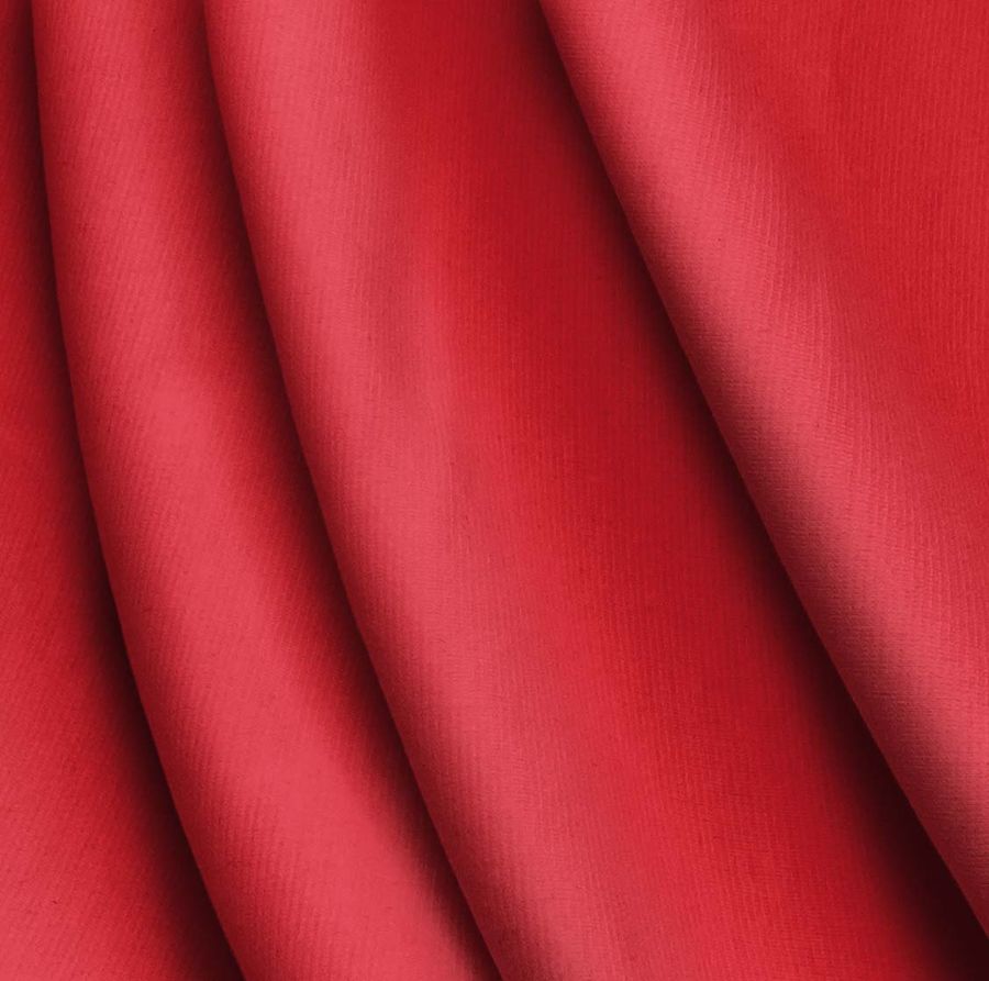 La tela base del producto es Punto Roma Elástico - Lyon, una tela de punto con una composición del 97% poliéster y 3% elastano, lo que le confiere una gran elasticidad y confortabilidad. El gramaje es de 282 gr/m2 y su ancho es de 150 cm. El Color Imperial Rojo impreso en la tela tiene un CMYK de 0 92 72 0. Este color secundario se caracteriza por ser un tono fuerte y vibrante, con una mezcla intensa entre la magenta y el amarillo, que le otorga un carácter muy personal. Este color combina especialmente bien con grises y con tonos naturales cercanos al beige.