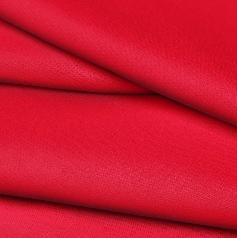 La tela base en cuestión es el Punto Roma Elástico - Lyon, una tela de punto compuesta por un 97% de poliéster y un 3% de elastano, con un peso de 282 gr/m2 y una anchura de 150 cm. Su color liso, impreso mediante la tecnología de sublimación en una sola cara, es rojo rubicundo, con un CMYK de 0 95 76 0.