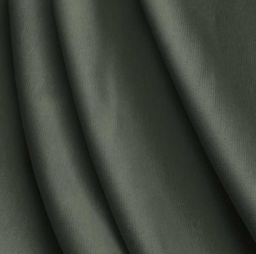La tela base es el Punto Roma Elástico - Lyon, compuesta por el 97% de poliéster y el 3% de elastano, con un gramaje de 282 gramos por metro cuadrado y un ancho de 150 cm. Este tejido de punto es de textura suave y se presenta en un color liso impreso en verde acorazado gris, con una combinación de tintas de cian, magenta, amarillo y negro medida en CMYK de 64, 46, 65 y 44, respectivamente.
