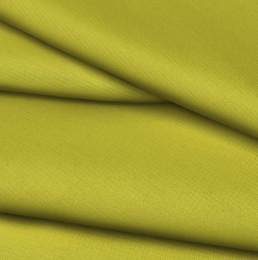 La tela base es un Punto Roma Elástico - Lyon de 97% poliéster y 3% elastano, con un gramaje de 282 gr/m2 y ancho de 150 cm. El color liso impreso es verde cartuja con un CMYK de 28 16 89 2, combinando la vibrancia del amarillo con la profundidad del azul y la calidez del rojo. La tela está impresa con este color a una sola cara por impresión digital textil, destacando por su suave textura. Entre las aplicaciones de este tejido se encuentran la confección de prendas de vestir y decoración para el hogar, como servilletas. En cuanto a los cuidados, se recomienda evitar el blanqueo y utilizar temperaturas máximas de 30ºC al lavarla o plancharla. Por último, la tecnología de impresión utilizada es la sublimación, que utiliza pigmentos para crear una impresión química en la tela base, asegurando una alta calidad de imagen y durabilidad.