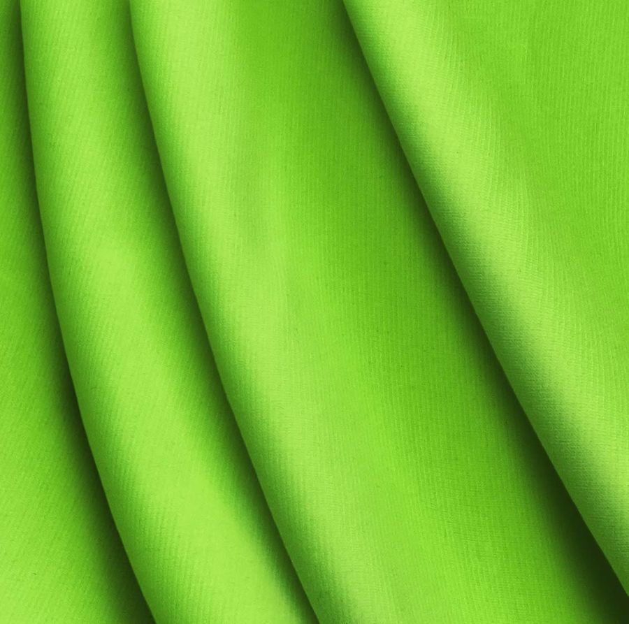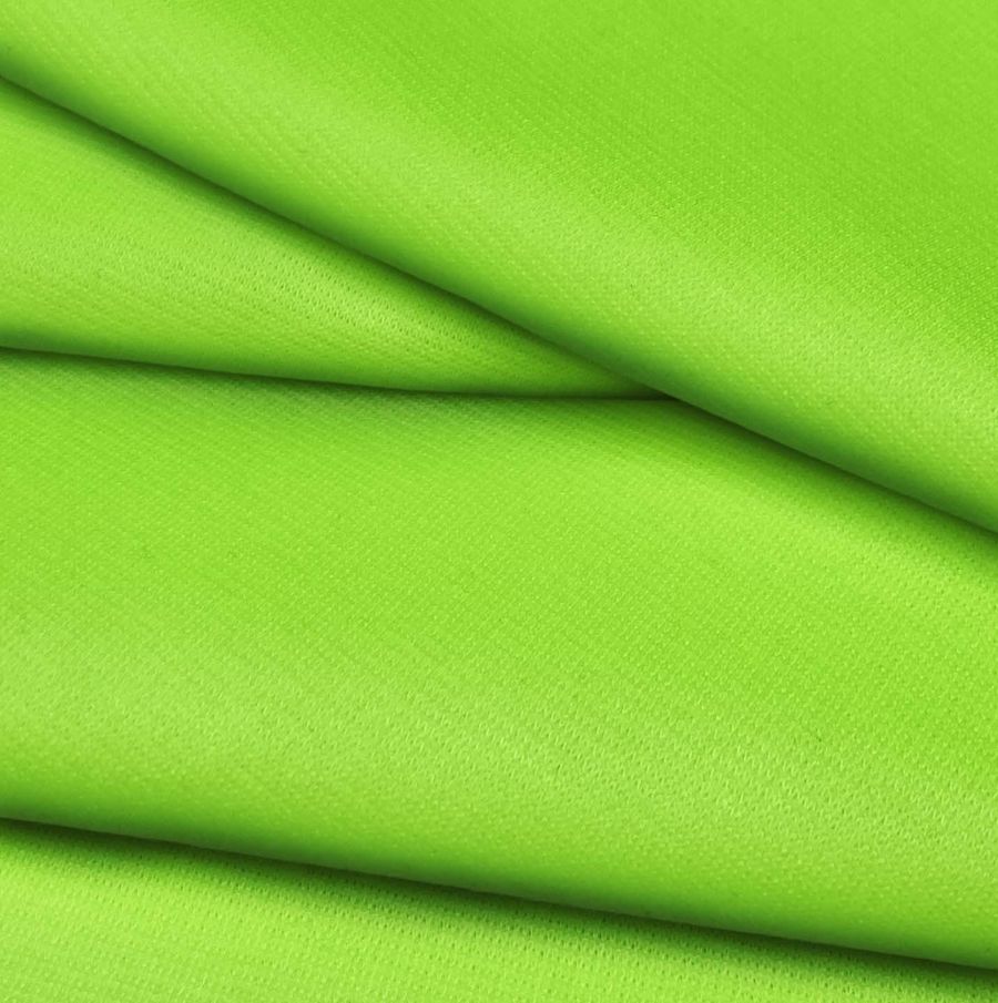 La tela base de este tejido es el Punto Roma Elástico - Lyon, una tela de punto compuesta por un 97% de poliéster y un 3% de elastano, con un gramaje de 282 gr/m2 y un ancho de 150 cm. El color liso impreso es Verde Lima, el cual se obtiene a través de la tecnología de sublimación y tiene un CMYK de 46 0 100 0, lo que significa que es un color muy vibrante con un alto nivel de saturación de amarillo y cyan.