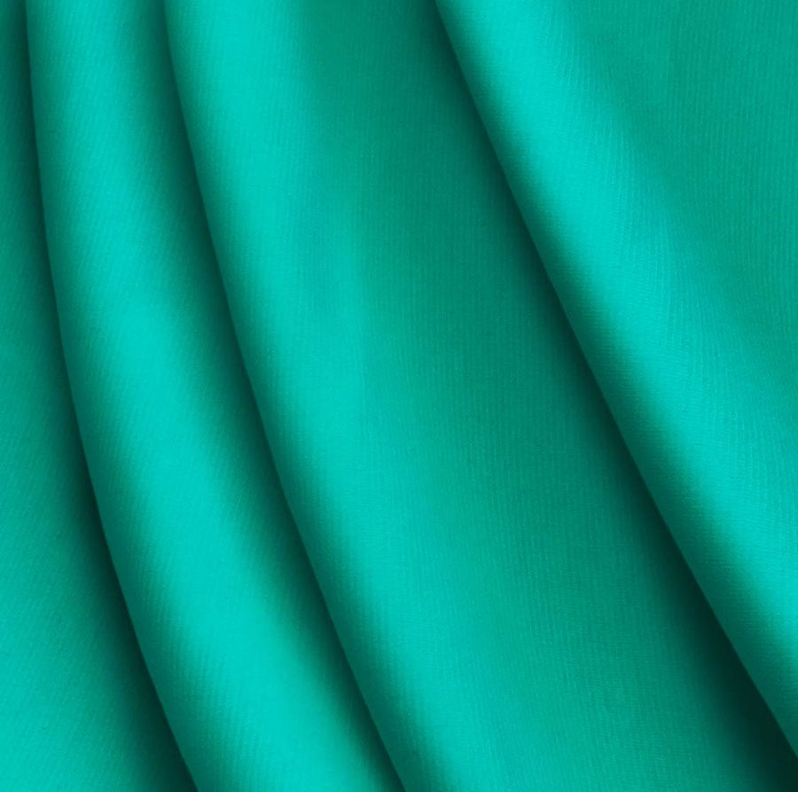 La tela base de esta prenda es el Punto Roma Elástico - Lyon, con una composición de 97% poliéster y 3% elastano, un gramaje de 282 gr/m2 y un ancho de 150 cm. El color liso impreso en esta tela es verde-mar profundo con un CMYK de 74 0 52 0, lo que se traduce en un tono muy natural que evoca a la profundidad del mar.