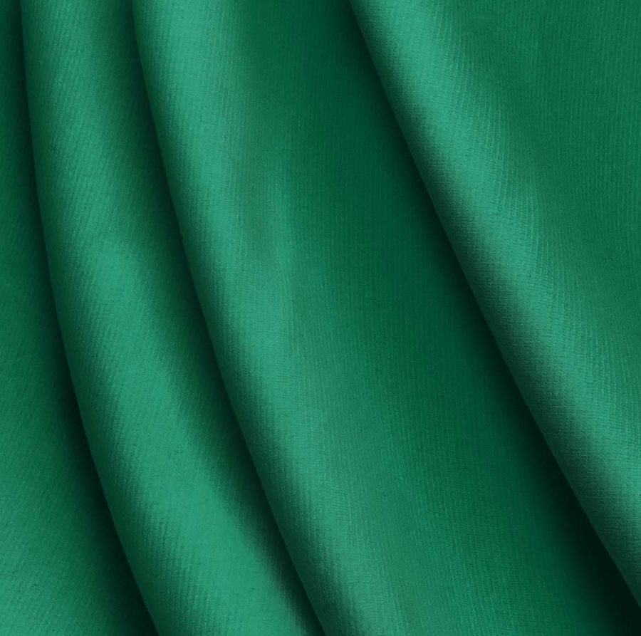 La tela base es el Punto Roma Elástico - Lyon, compuesta por 97% poliéster y 3% elastano, con un gramaje de 282 gr/m2 y un ancho de 150 cm. El color liso impreso es una mezcla de verde y cobalto con un CMYK de 85 23 74 7. El color secundario, el verde, simboliza la naturaleza y la armonía, mientras que el cobalto aporta serenidad y profundidad. Combinado con tonos neutros, como el gris o el beige, crean un equilibrio elegante y sofisticado. La tela está impresa con el color liso a una sola cara por impresión digital textil.
