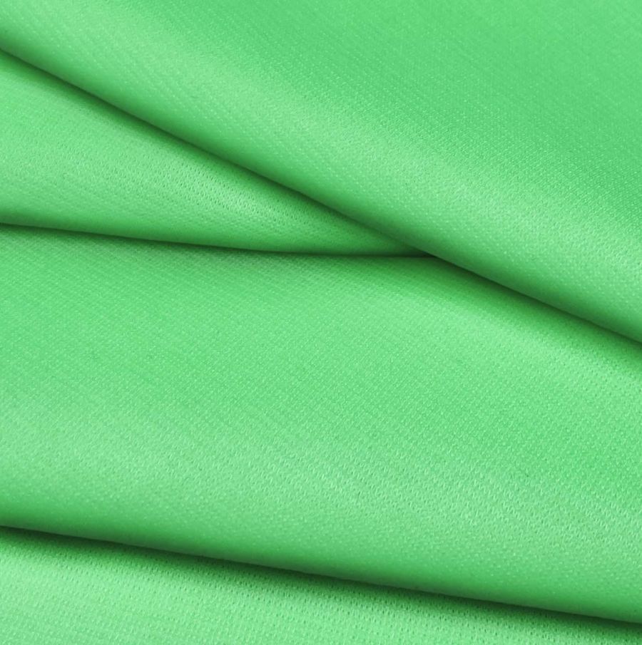 La tela base es el Punto Roma Elástico - Lyon, una tela de punto compuesta por un 97% de poliéster y un 3% de elastano, con un gramaje de 282 gr/m2 y una anchura de 150 cm. El color liso impreso es un Verde Heliógeno, que se obtiene mediante la técnica de sublimación e imprime a una sola cara por impresión digital textil. El CMYK del color liso es 52 0 67 0.