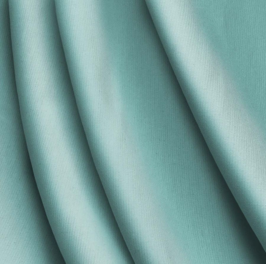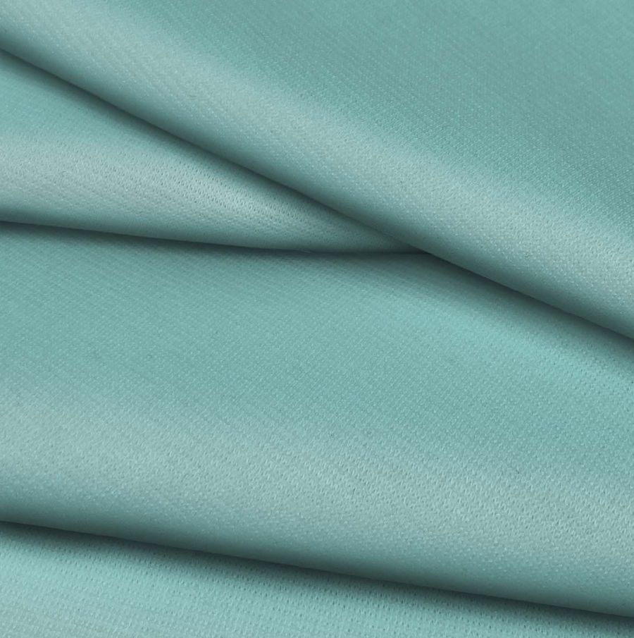 La tela base es un Punto Roma Elástico llamado Lyon, compuesto por un 97% de poliéster y un 3% de elastano, con un gramaje de 282 gr/m2 y un ancho de 150 cm. El color liso impreso es verde luminoso, con un CMYK de 52-5-29-0, y es impreso a una sola cara por impresión digital textil. La tonalidad verde se percibe de forma muy sutil, logrando un aspecto suave y delicado al combinarlo con otros colores pastel o neutros.