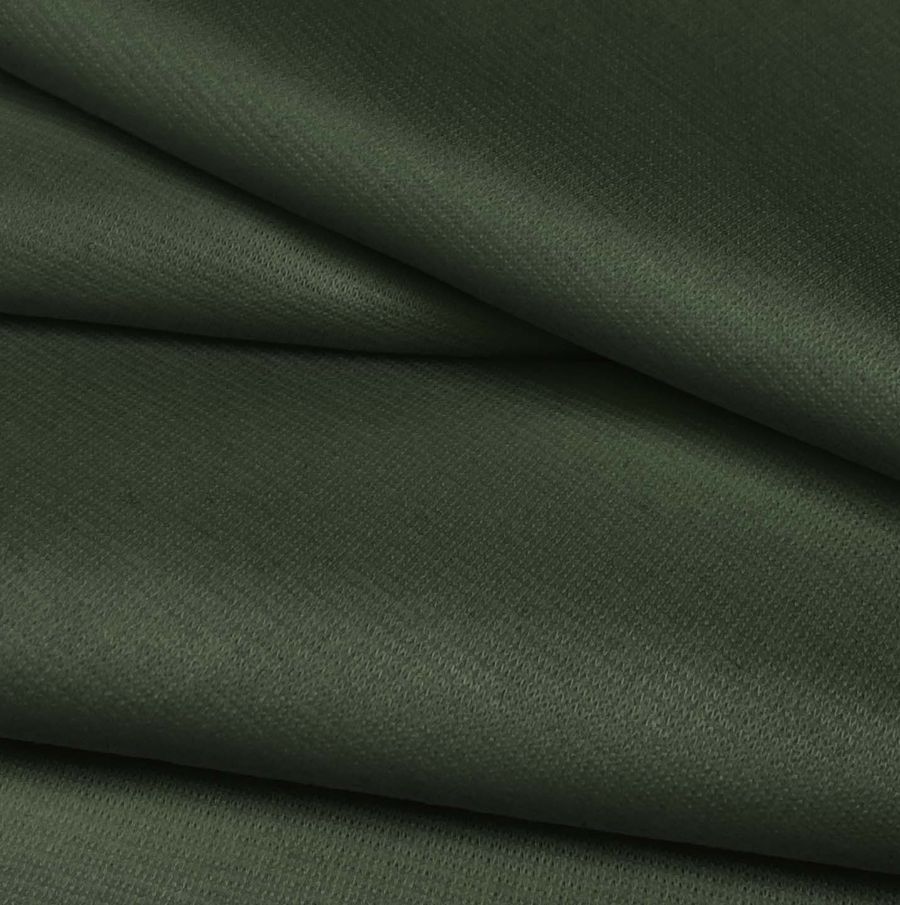 La tela base es el Punto Roma Elástico - Lyon, con una composición de 97% POLIÉSTER y 3% ELASTANO y un peso de 282 gr/m2. El color liso impreso en la tela es Verde Monte, con una combinación de tintas CMYK de 75 53 80 64. Este color se describe como una tonalidad que evoca el equilibrio y la armonía, con elementos refrescantes y naturales que invitan a la tranquilidad. El Verde Monte combina perfectamente con colores como el gris claro, rosa pálido, marrón chocolate y azul celeste.
