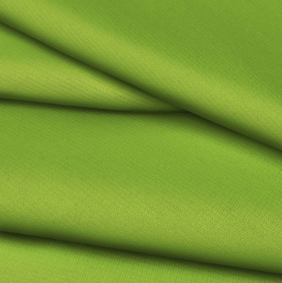 La tela base es el Punto Roma Elástico - Lyon, una tela de punto compuesta por un 97% de poliéster y un 3% de elastano con un gramaje de 282 gr/m2 y un ancho de 150 cm. El color liso impreso es un verde primitivo con una combinación de tinta cyan del 55%, tinta magenta del 5%, tinta yellow del 94% y tinta black del 0%, lo que equivale a un CMYK de 55 5 94 0. Este color secundario simboliza la naturaleza, el crecimiento y la vida. Combina especialmente con tonos neutros como el blanco y el negro y con otros verdes, además de añadir un toque de frescura y originalidad a cualquier diseño.