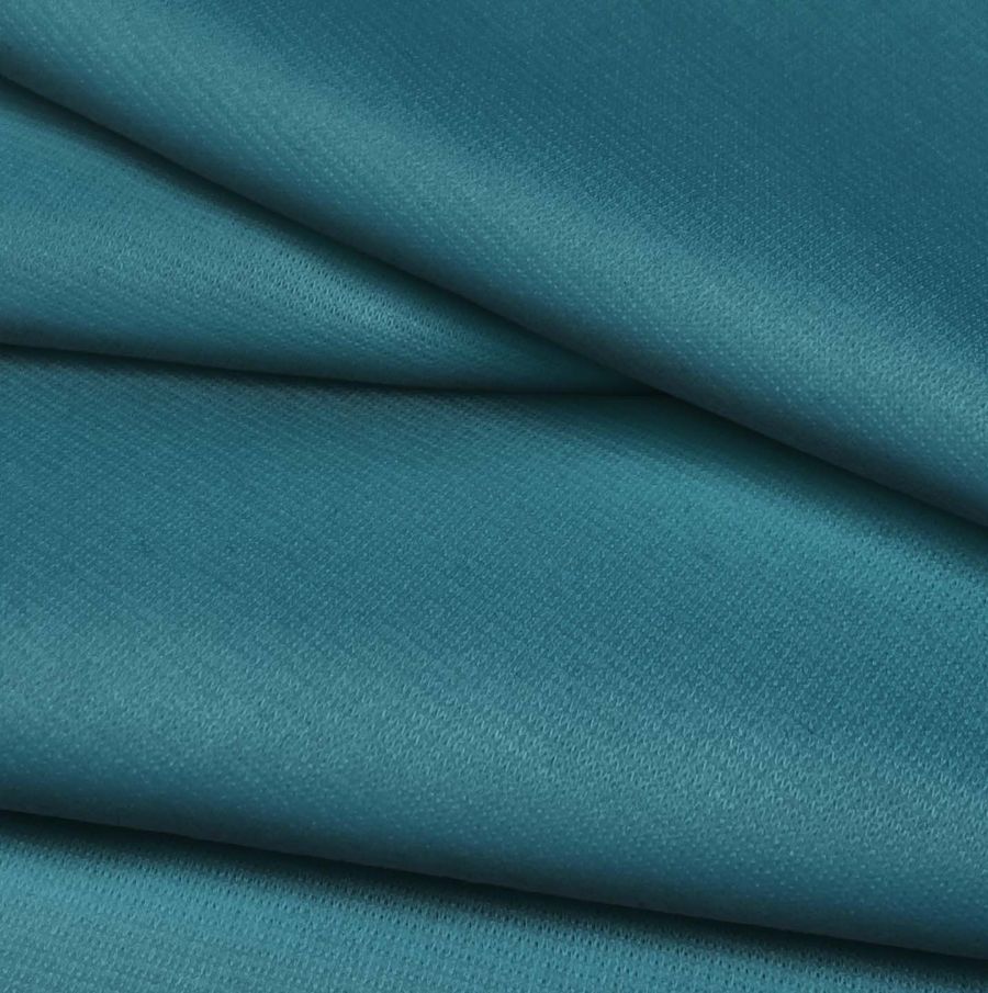 La tela base es el Punto Roma Elástico - Lyon, de tipo tela de punto, con una composición de 97% poliéster y 3% elastano y un gramaje de 282 gr/m2. El color liso impreso es un elegante Azul Agua, con una combinación de tinta Cyan de 82, tinta Magenta de 39, tinta Yellow de 37 y tinta Black de 21, formando el CMYK de 82 39 37 21. Este color secundario evoca la calma y la serenidad del agua primaveral, siendo especialmente adecuado para la moda de temporada Primavera-Verano. Se combina de forma excepcional con los colores blanco, beige, verde agua, turquesa y rosa claro. Cabe destacar que el tejido está impreso con el color liso a una sola cara por impresión digital textil, lo que significa que no se trata de un tejido tintado sino que está impreso por una sola cara.