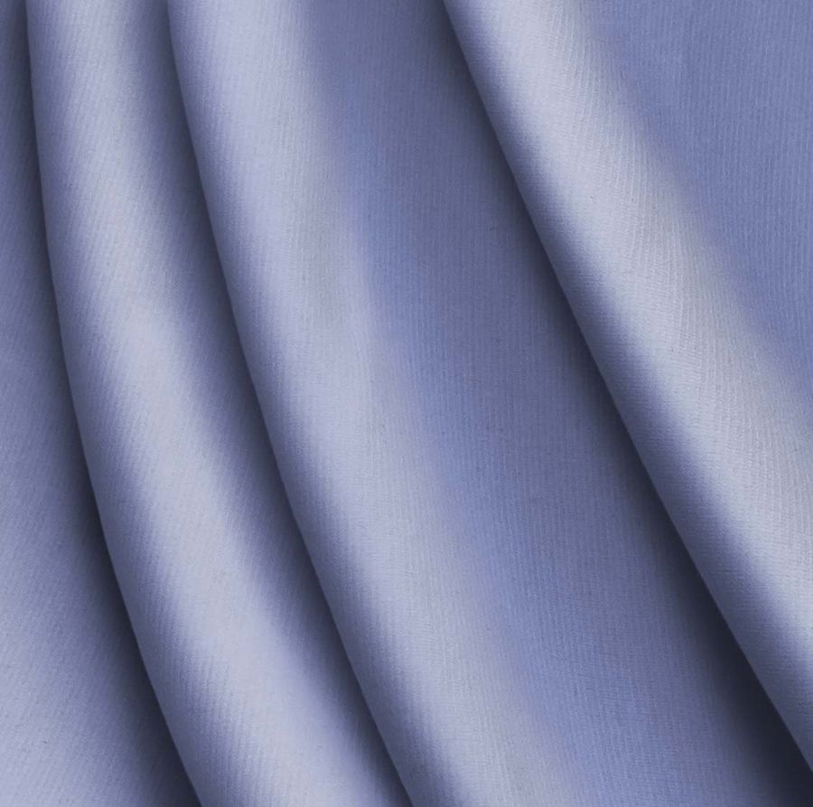 La tela base es el Punto Roma Elástico - Lyon, una tela de punto compuesta por 97% de poliéster y 3% de elastano, con un gramaje de 282 gr/m2 y un ancho de 150 cm. El color liso impreso es de tonalidad azul aciano, con un contenido de tinta cyan de 53, tinta magenta de 41, tinta yellow de 2 y tinta black de 0, lo que da como resultado un CMYK de 53 41 2 0.