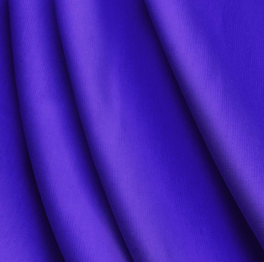La tela base es el Punto Roma Elástico - Lyon, una tela de punto con composición de 97% poliéster y 3% elastano, con un gramaje de 282 gr/m2 y un ancho de 150 cm. El color liso impreso es un azul chillón con un CMYK de 87 79 0 0. Este color simboliza la calma, la serenidad y la concentración, así como también la profundidad y la estabilidad. Al combinarlo con otros colores, se puede obtener una paleta de tonos grises, blancos y negros muy estilosos. Cabe destacar que la tela está impresa con el color a una sola cara por impresión digital textil, lo que nos indica que no es un tejido tintado, sino impreso por una sola cara.