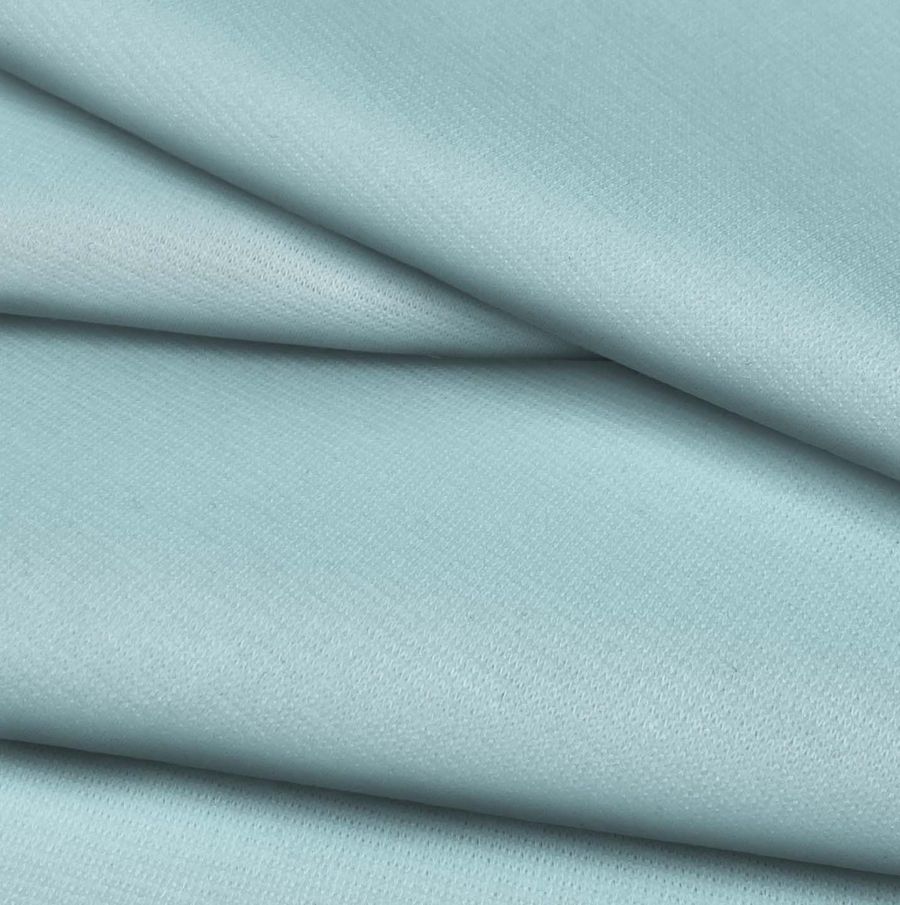La tela base es la Punto Roma Elástico - Lyon, una tela de punto compuesta por 97% POLIÉSTER y 3% ELASTANO con un gramaje de 282 gr/m2 y un ancho de 150 cm. El color liso impreso es un azul de niño, con un CMYK de 34 0 12 0, impreso a una sola cara por impresión digital textil. El color secundario se puede describir como un azul claro con toques de gris y se combina especialmente bien con colores como el blanco, el negro, el gris y el rosa claro. Es un color suave y fresco, ideal para prendas de ropa de temporada, especialmente para complementar tonos más oscuros.
