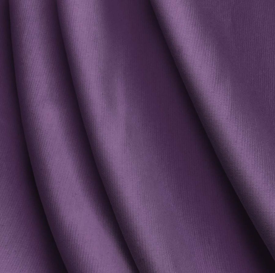 La tela base es el Punto Roma Elástico - Lyon, compuesta por un 97% de poliéster y un 3% de elastano con un gramaje de 282 gr/m2 y una anchura de 150 cm. El color liso impreso es una combinación de azul y lila, cuyo CMYK es 65 78 27 12. Es un color que transmite tranquilidad mediante tonalidades suaves y delicadas, dando un toque moderno y refinado a la tela. Además, el azul y el lila combinan perfectamente con otros colores pastel como el rosa claro o el beige, creando una atmósfera armoniosa y elegante.