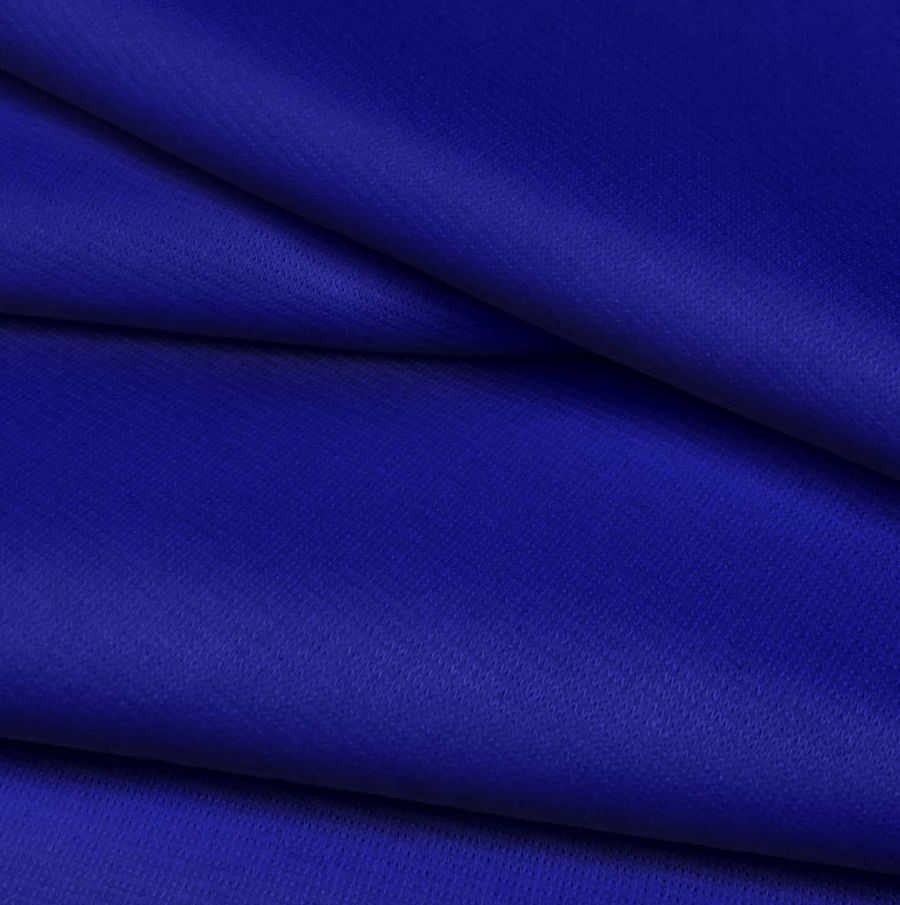 La tela base es el Punto Roma Elástico - Lyon, un tejido de punto compuesto por 97% poliéster y 3% elastano, con un gramaje de 282 gr/m2 y un ancho de 150 cm. Su color liso impreso es un tono azul marino intenso, representado por un perfil de CMYK de 100 93 26 14. Su textura es suave al tacto y se imprime a una sola cara por impresión digital textil.