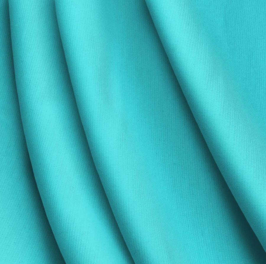 La tela base es el Punto Roma Elástico - Lyon, compuesta por un 97% de poliéster y un 3% de elastano, con un gramaje de 282 gr/m2 y un ancho de 150 cm. El color liso impreso es el Azul Neón, cuyo CMYK es 55 0 12 0. Este color es un tono luminoso y vibrante, que combina perfectamente con colores neutros como el blanco, el gris o el negro, especialmente en prendas de moda femenina. La tela se imprime a una sola cara por impresión digital textil, utilizando la tecnología de sublimación (poliéster).