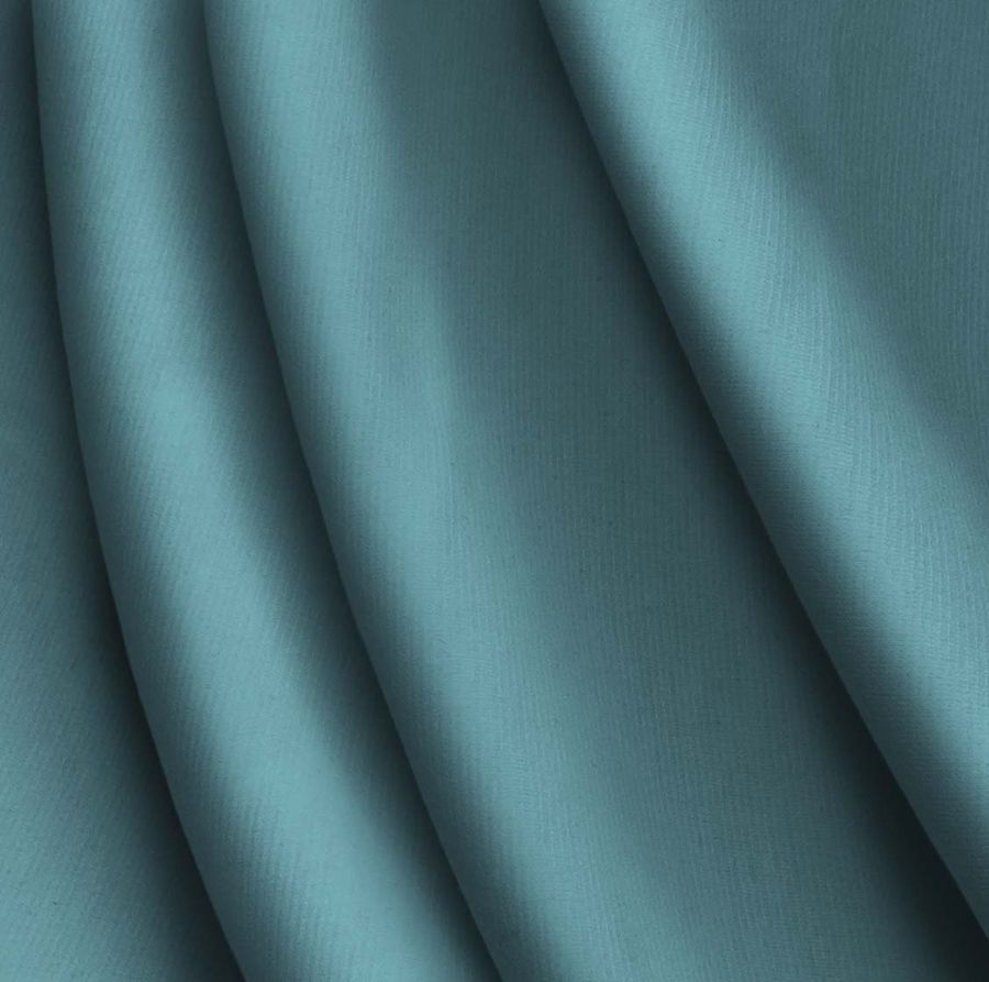 La tela base es el Punto Roma Elástico - Lyon, compuesta por un 97% de poliéster y un 3% de elastano, con un peso de 282 gr/m2 y un ancho de 150 cm. El color liso impreso es Azul Porcelana, con un CMYK de 70 37 40 21. Este color transmite sensaciones de tranquilidad, armonía y elegancia, además de ser un tono atemporal. Combinado con colores neutros como el blanco o el negro, da un aspecto sereno y sofisticado. La tela está impresa con el color liso a una sola cara por impresión digital textil.