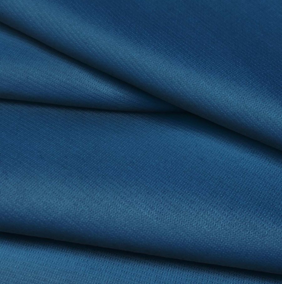 La tela base es el Punto Roma Elástico - Lyon, una tela de punto compuesta por 97% poliéster y 3% elastano, con un gramaje de 282 gr/m2 y 150 cm de ancho. El color liso impreso es Azul seda, el cual contiene 98% de tinta cyan, 71% de tinta magenta, 31% de tinta yellow y 17% de tinta black, con un CMYK de 98 71 31 17.