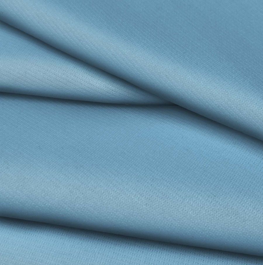 La tela base es la Punto Roma Elástico - Lyon, una tela de punto con una composición del 97% poliéster y un 3% de elastano que le da esa característica elástica para una mayor comodidad en su uso. Su Gramaje es de 282 gr/m2 y está disponible en un ancho de 150 cm. La tela es de color liso, con un tono de azul día cielo azul, representado en el CMYK con 57 de tinta cyan, 20 de tinta magenta, 10 de tinta yellow y 0 de tinta black. Este color simboliza la calma, la tranquilidad, la armonía y la limpieza, y es muy utilizado en prendas de vestir por su versatilidad. Combina bien con tonos neutros como el blanco y el gris, así como con colores oscuros para un contraste más dramático.